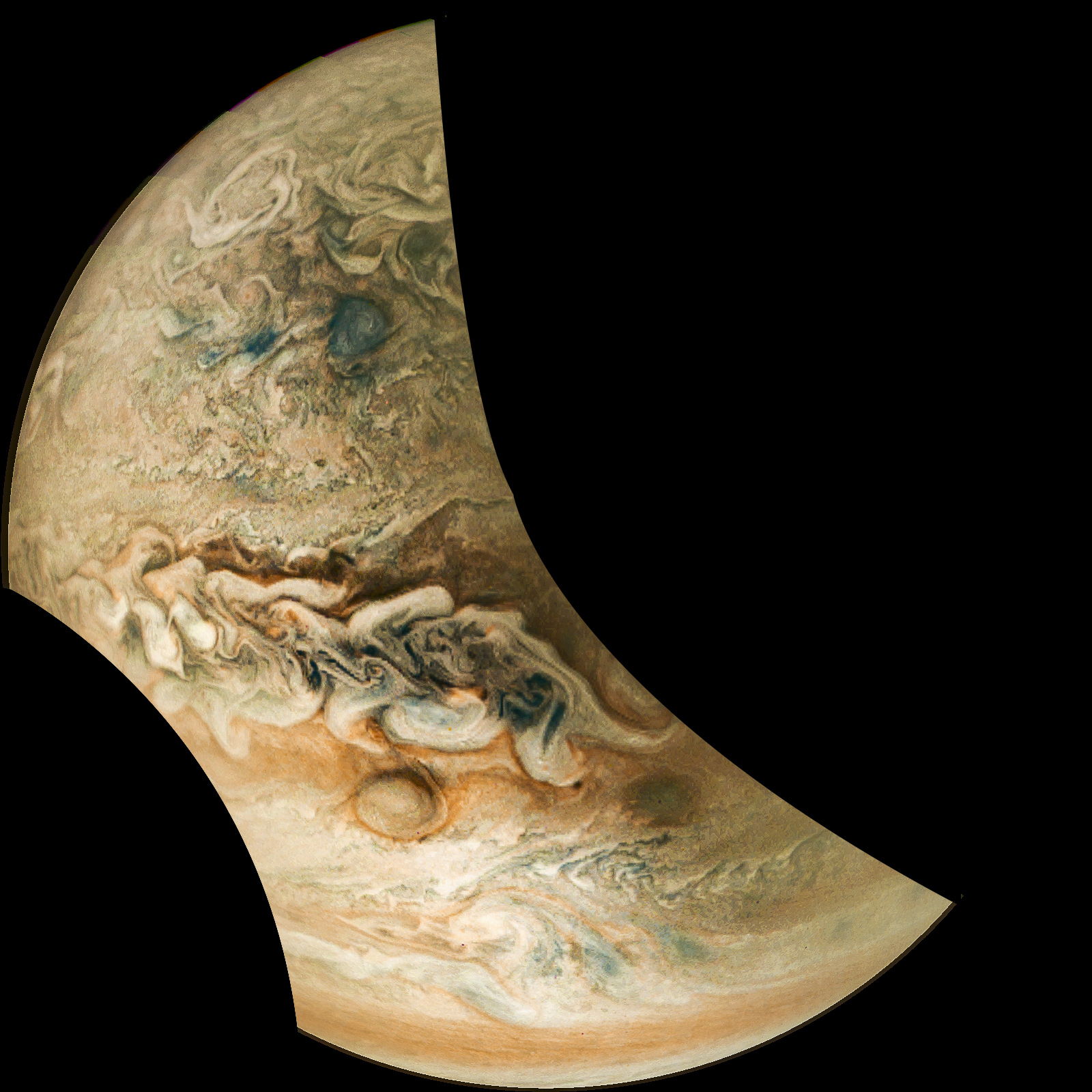 A special note about the Earth Flyby mission phase images: these were acquired in 2013 when Juno flew past Earth. Examples of processed images are shown; most contributions are from amateurs.