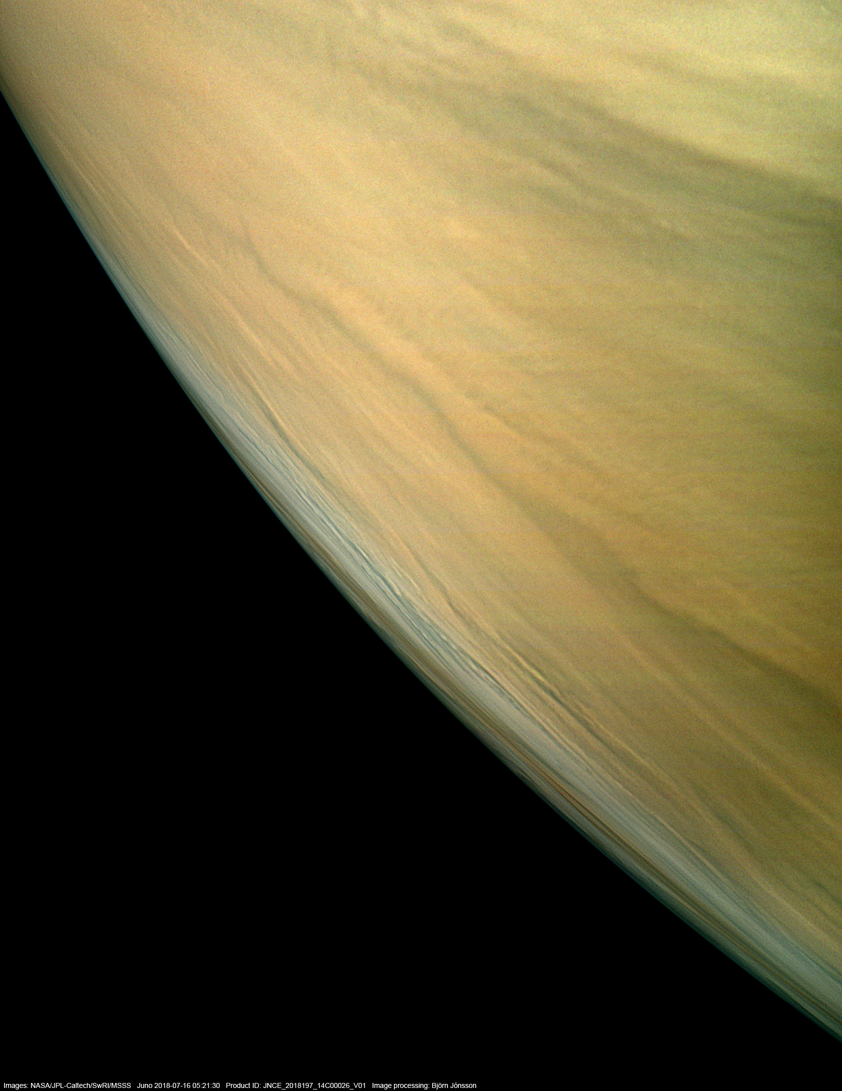 An image processed from the raw image PJ14_26 framelets. The color and contrast is exaggerated in this image and various details have been sharpened.