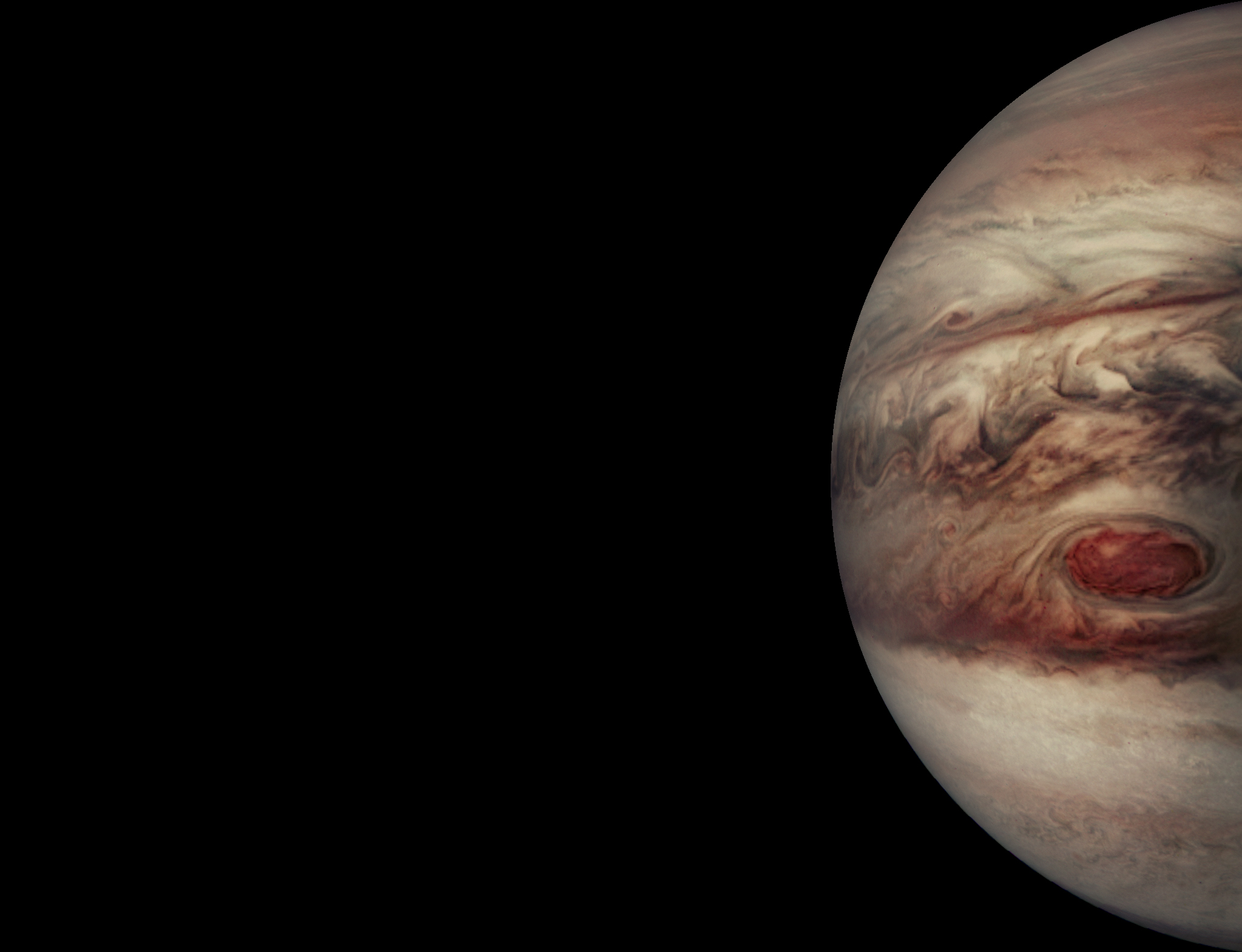 A composite of adjusted red, blue, and green monochrome images from the PJ14 South Equatorial Belt North image set.