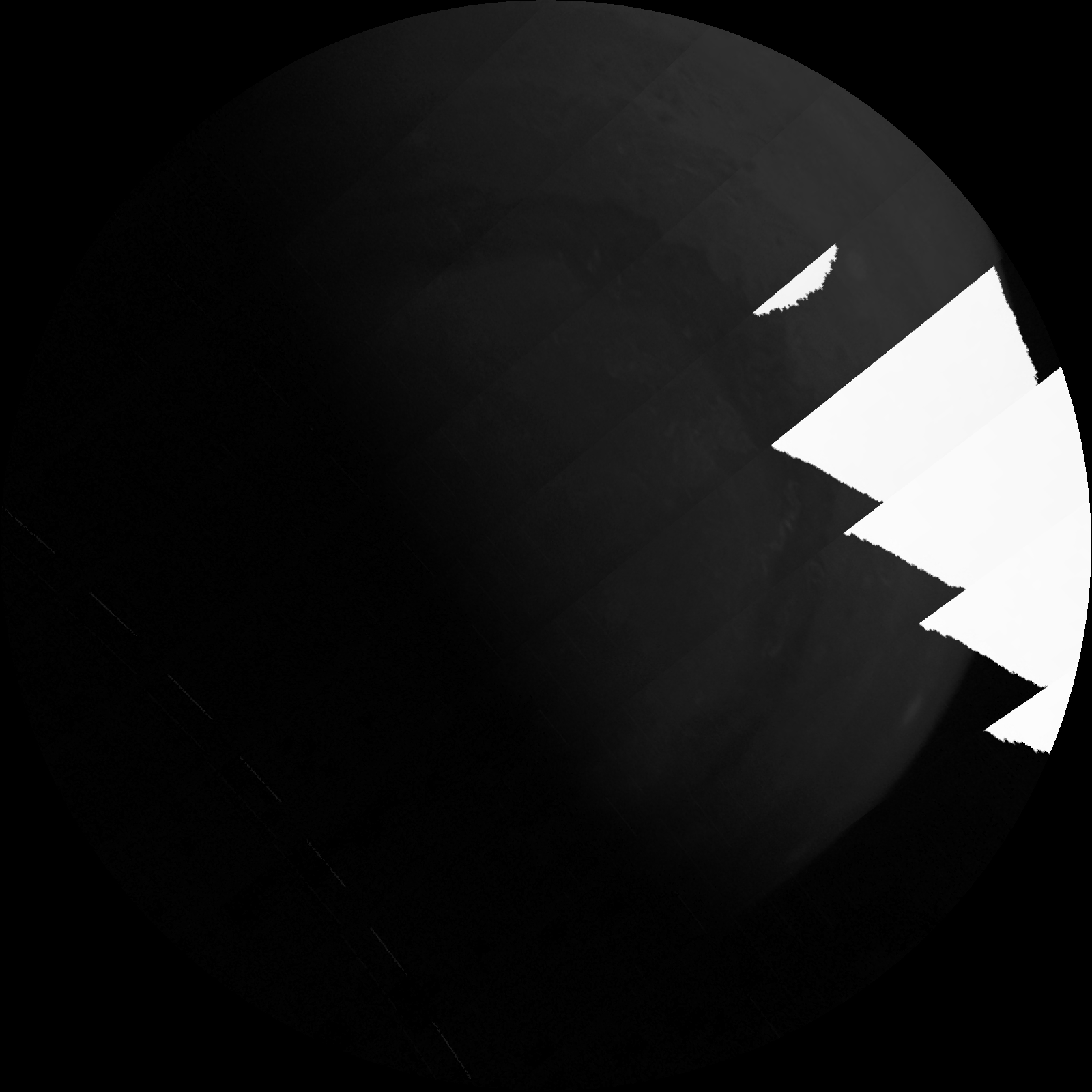 We have a methane filter, included for the polar science investigation, that is almost at the limits of our detector’s wavelength range. To get enough photons for an image we need to use a very long exposure. In some images this results in scattered light in the image. For science purposes we will simply crop out the portions of the image that include this artifact. Work is in progress to determine exactly what conditions cause stray light problems so that this can be minimized for future imaging.