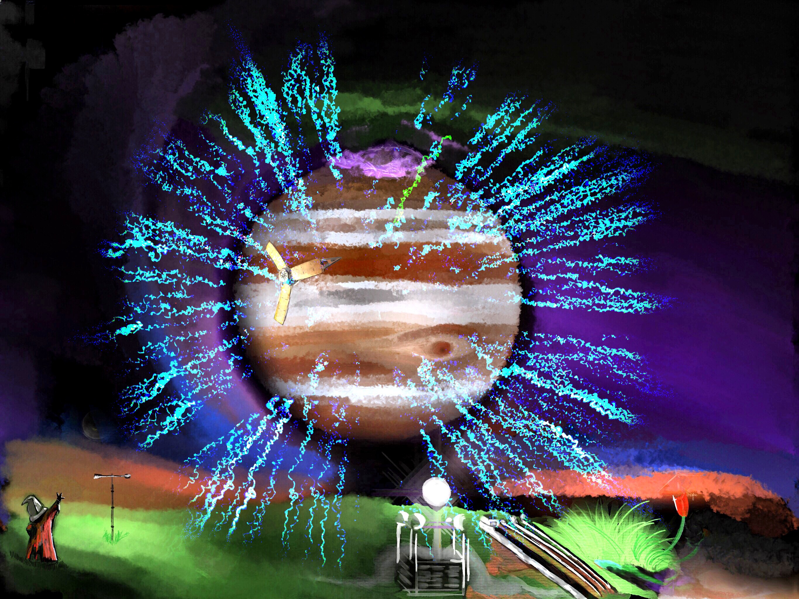 My second painting ever a week after acquisition of an Apple Pencil. First prize winner of the social media creative challenge hosted by United Launch Alliance (builder of Atlas V on which Juno was launched). Final version (includes light-painted trails from De Efteling Droomvlught caught on iPhone).