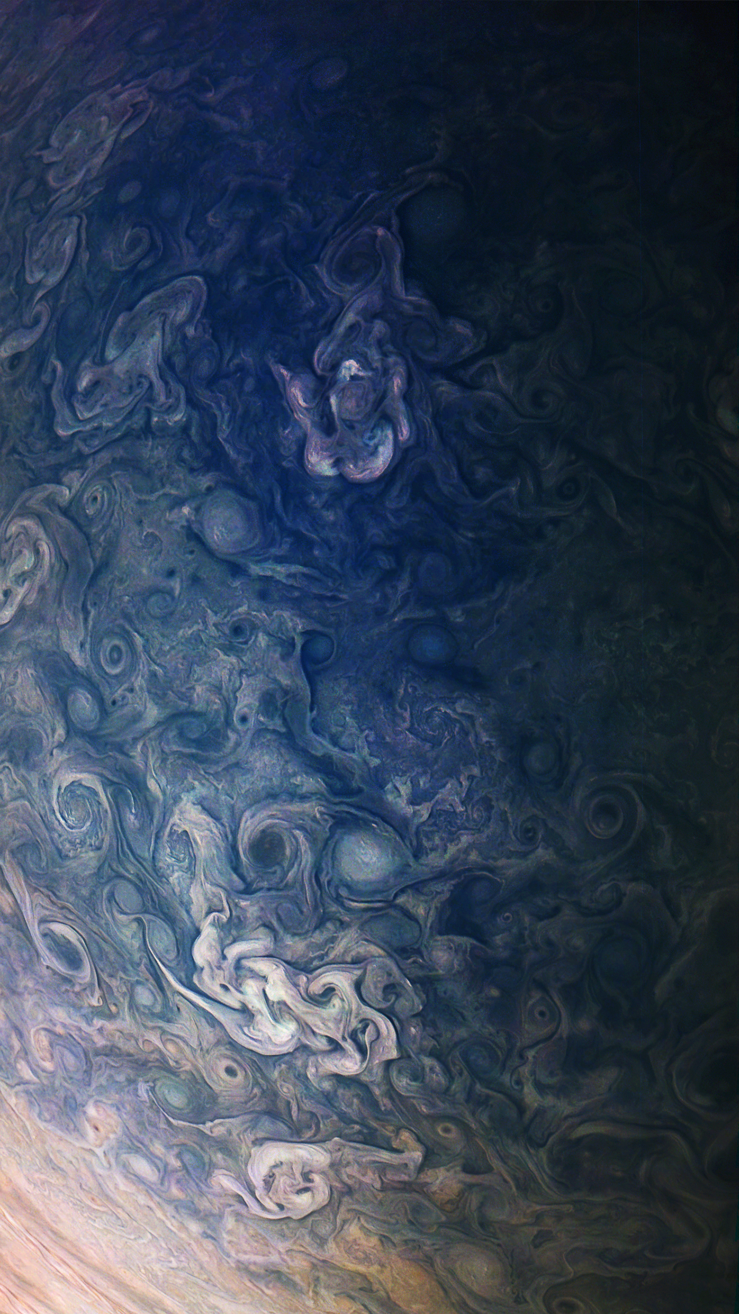 Junocam pixels are 12 bits deep from the camera but are converted to 8 bits inside the instrument using a lossless "companding" table, a process similar to gamma correction, to reduce their size. All Junocam products on the missionjuno website are in this 8-bit form as received on Earth. Scientific users interested in radiometric analysis should use the "RDR" data products archived with the Planetary Data System, which have been converted back to a linear 12-bit scale.