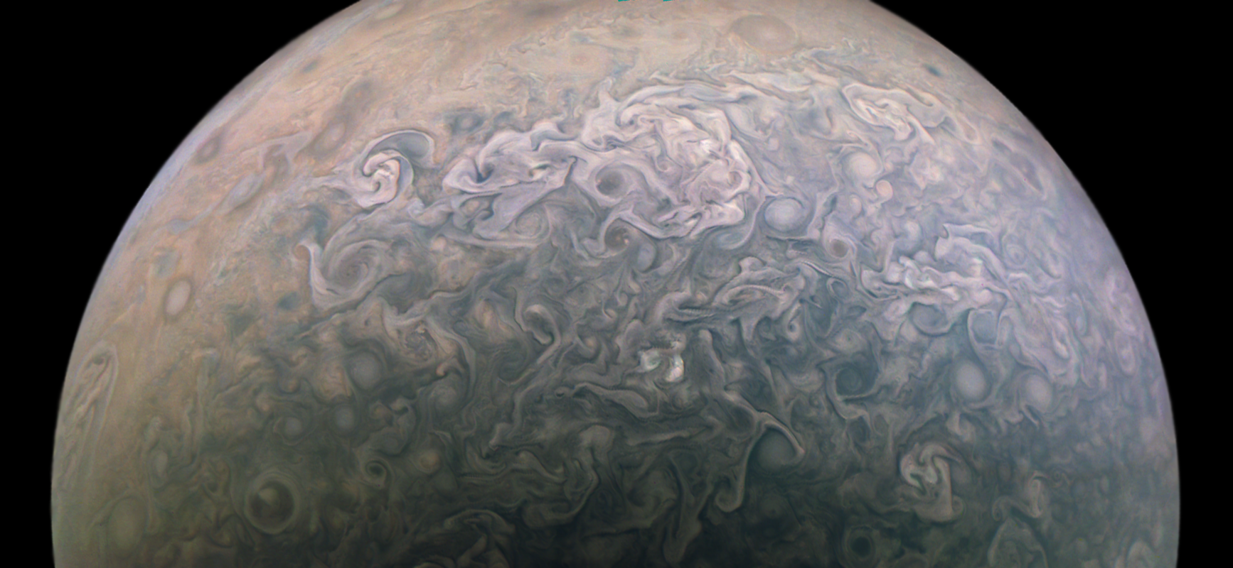 Junocam pixels are 12 bits deep from the camera but are converted to 8 bits inside the instrument using a lossless "companding" table, a process similar to gamma correction, to reduce their size. All Junocam products on the missionjuno website are in this 8-bit form as received on Earth. Scientific users interested in radiometric analysis should use the "RDR" data products archived with the Planetary Data System, which have been converted back to a linear 12-bit scale.