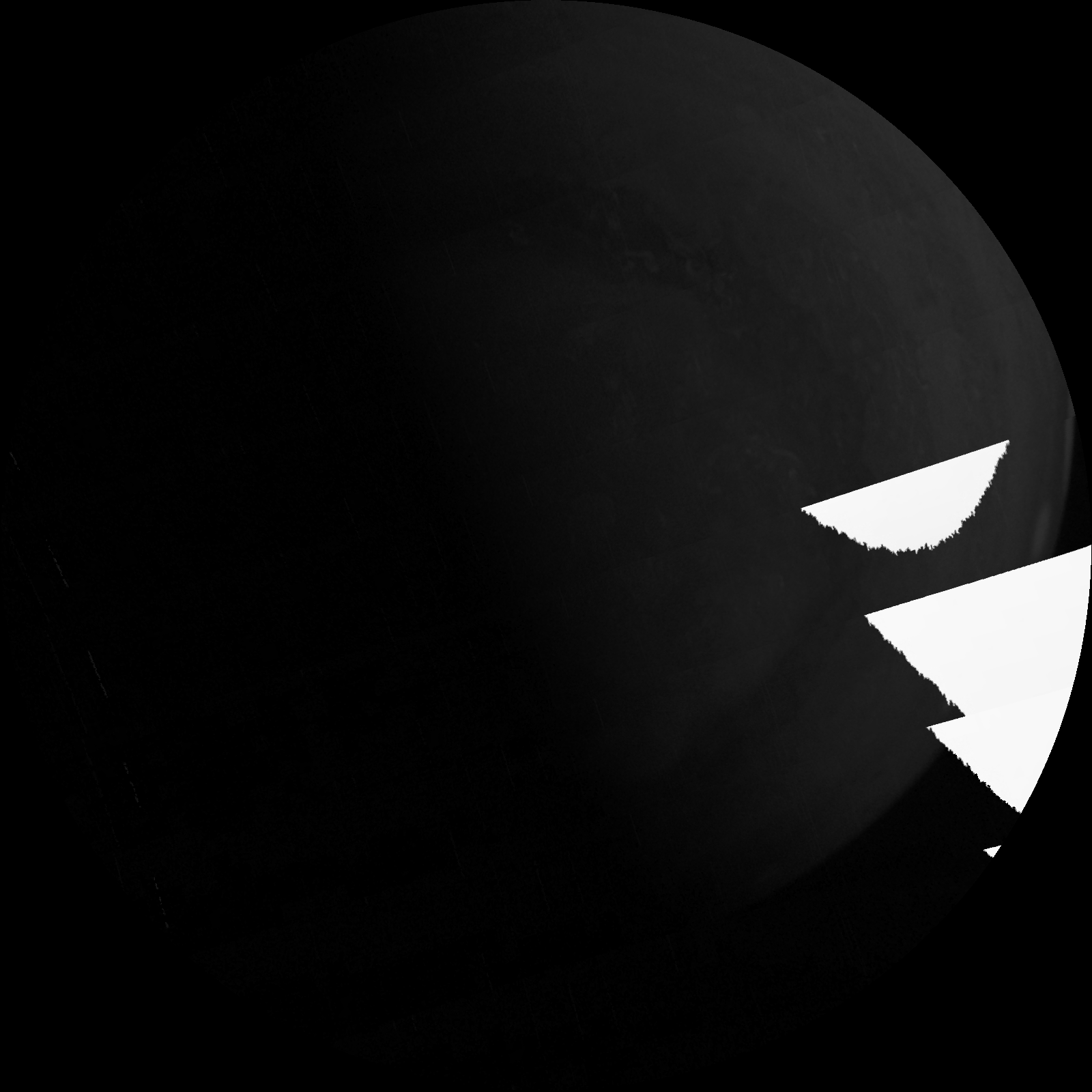 We have a methane filter, included for the polar science investigation, that is almost at the limits of our detector’s wavelength range. To get enough photons for an image we need to use a very long exposure. In some images this results in scattered light in the image. For science purposes we will simply crop out the portions of the image that include this artifact. Work is in progress to determine exactly what conditions cause stray light problems so that this can be minimized for future imaging.