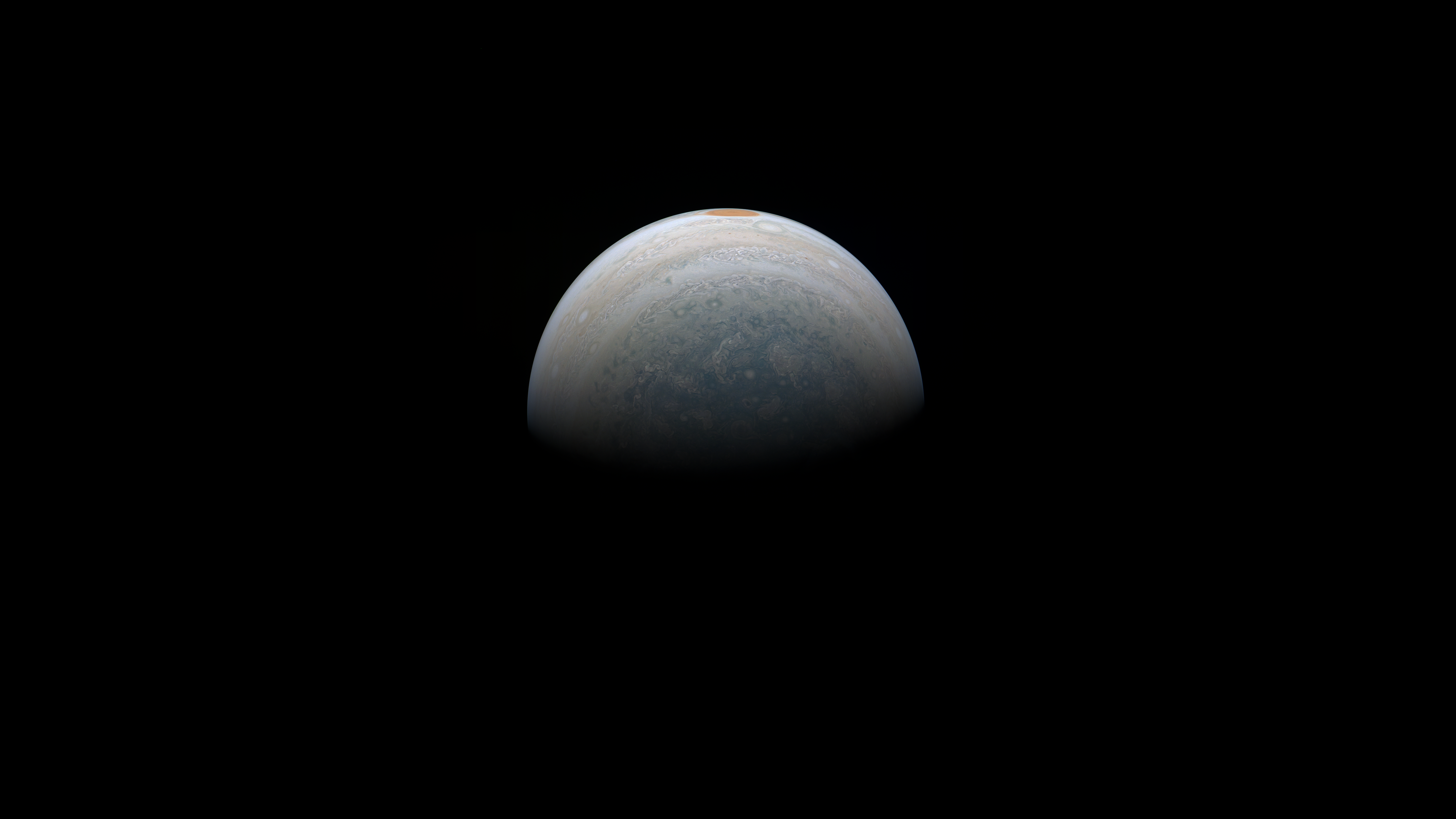 Junocam pixels are 12 bits deep from the camera but are converted to 8 bits inside the instrument using a lossless "companding" table, a process similar to gamma correction, to reduce their size. All Junocam products on the missionjuno website are in this 8-bit form as received on Earth. Scientific users interested in radiometric analysis should use the "RDR" data products archived with the Planetary Data System, which have been converted back to a linear 12-bit scale.