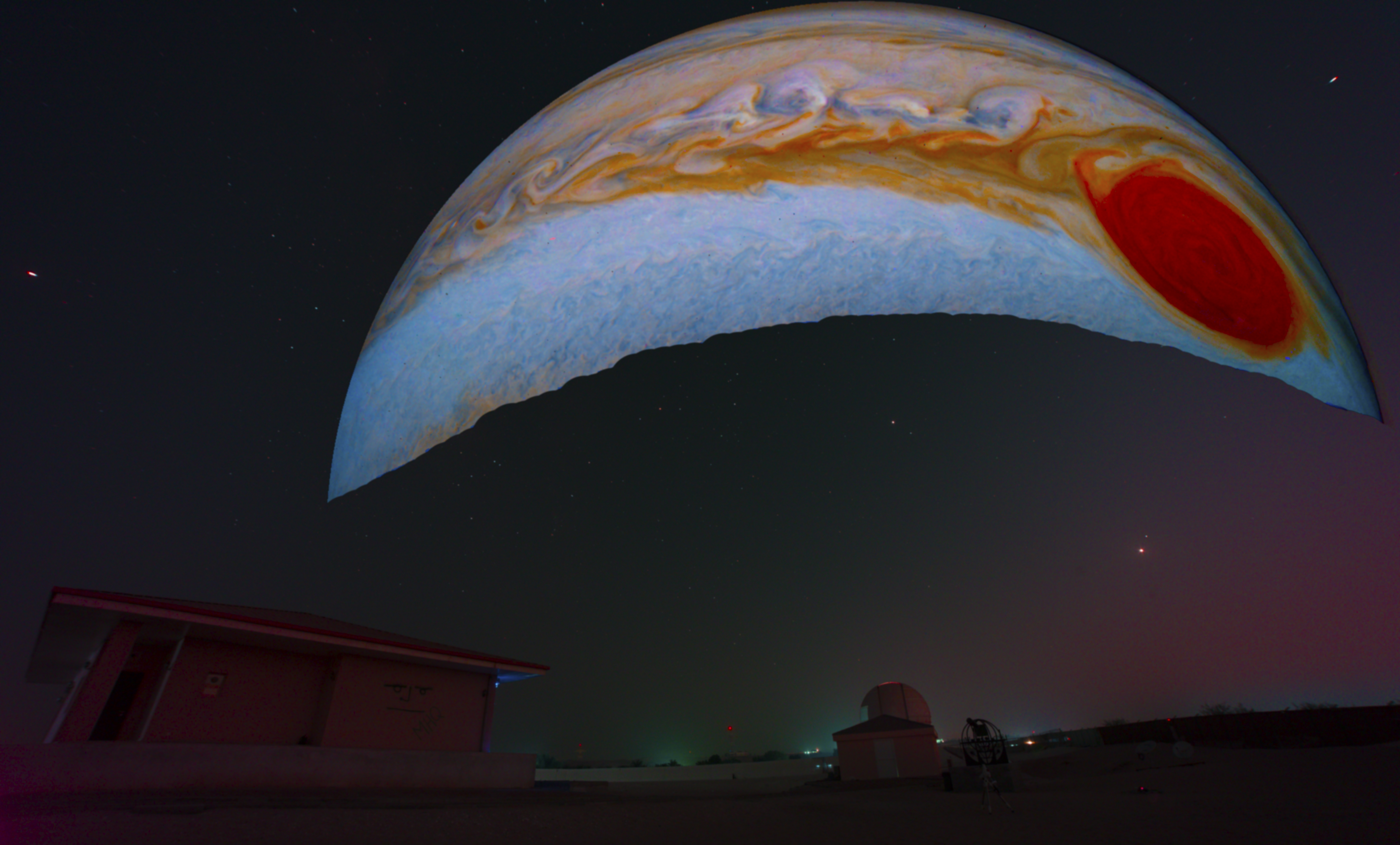 I merged an image of Jupiter taken by Juno, with an image of our observatory, Al Sadeem Observatory, in Abu Dhabi UAE.