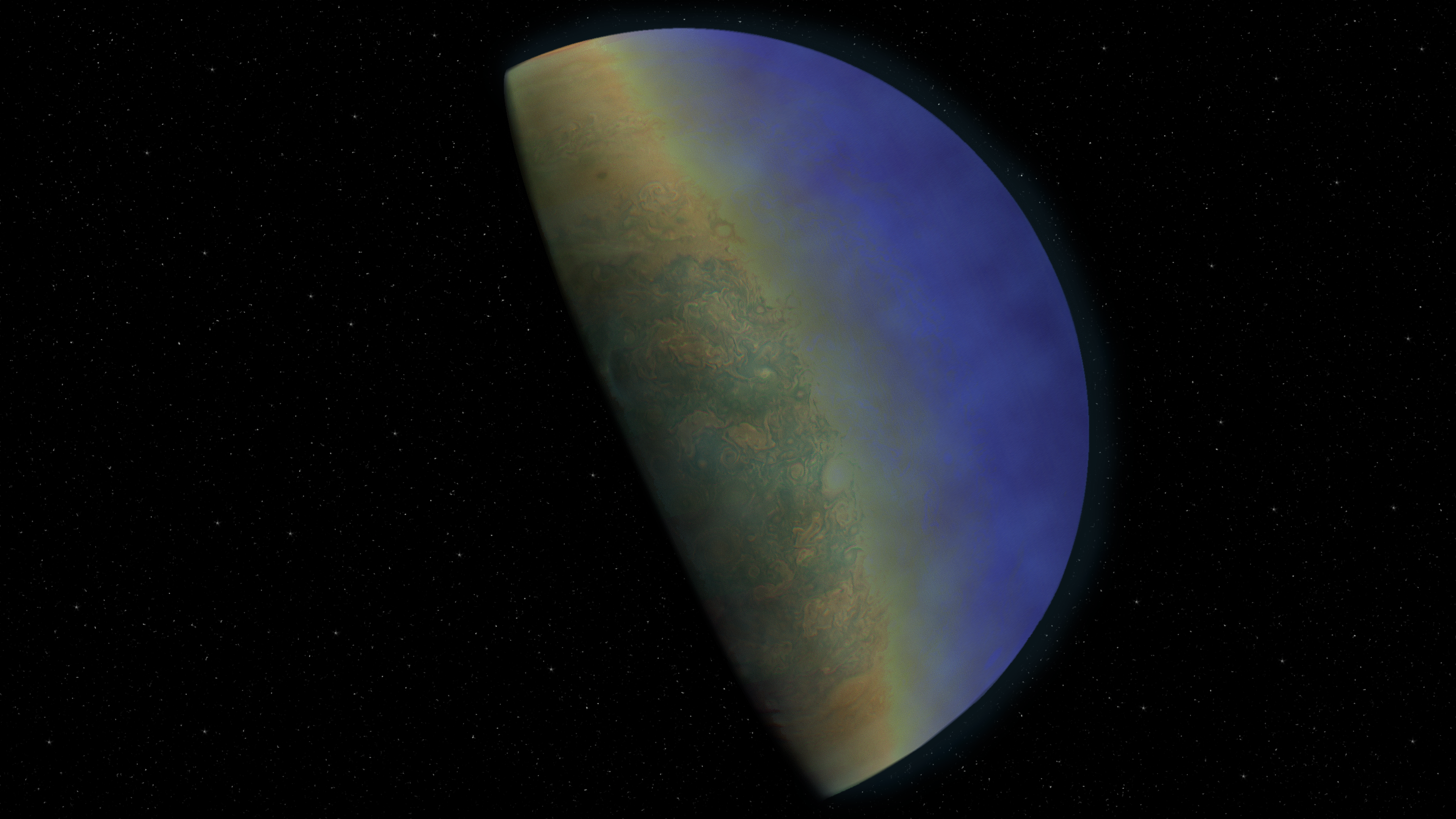 exposure) to try to detect Jupiter’s aurora. We imaged at two different geometries, looking directly down at the pole