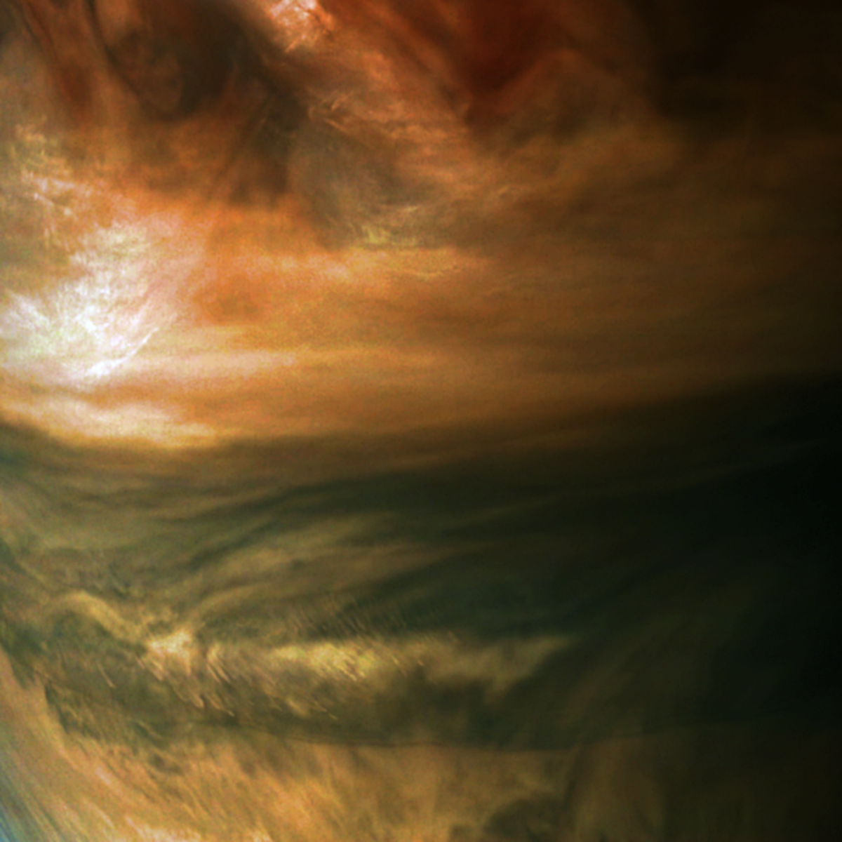 This enhanced crop is showing several kinds of wave-like features in the equatorial belt.