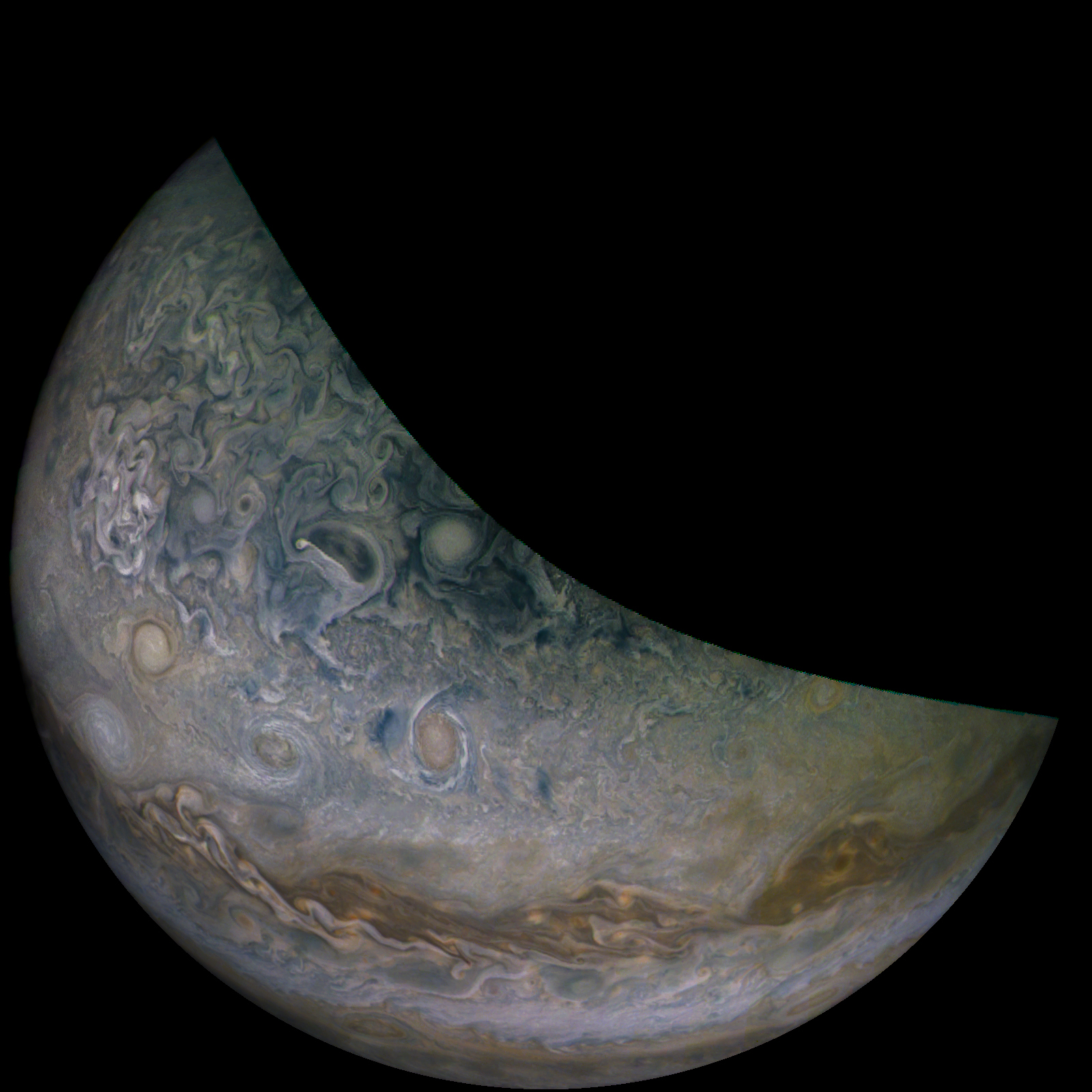 A special note about the Earth Flyby mission phase images: these were acquired in 2013 when Juno flew past Earth. Examples of processed images are shown; most contributions are from amateurs.