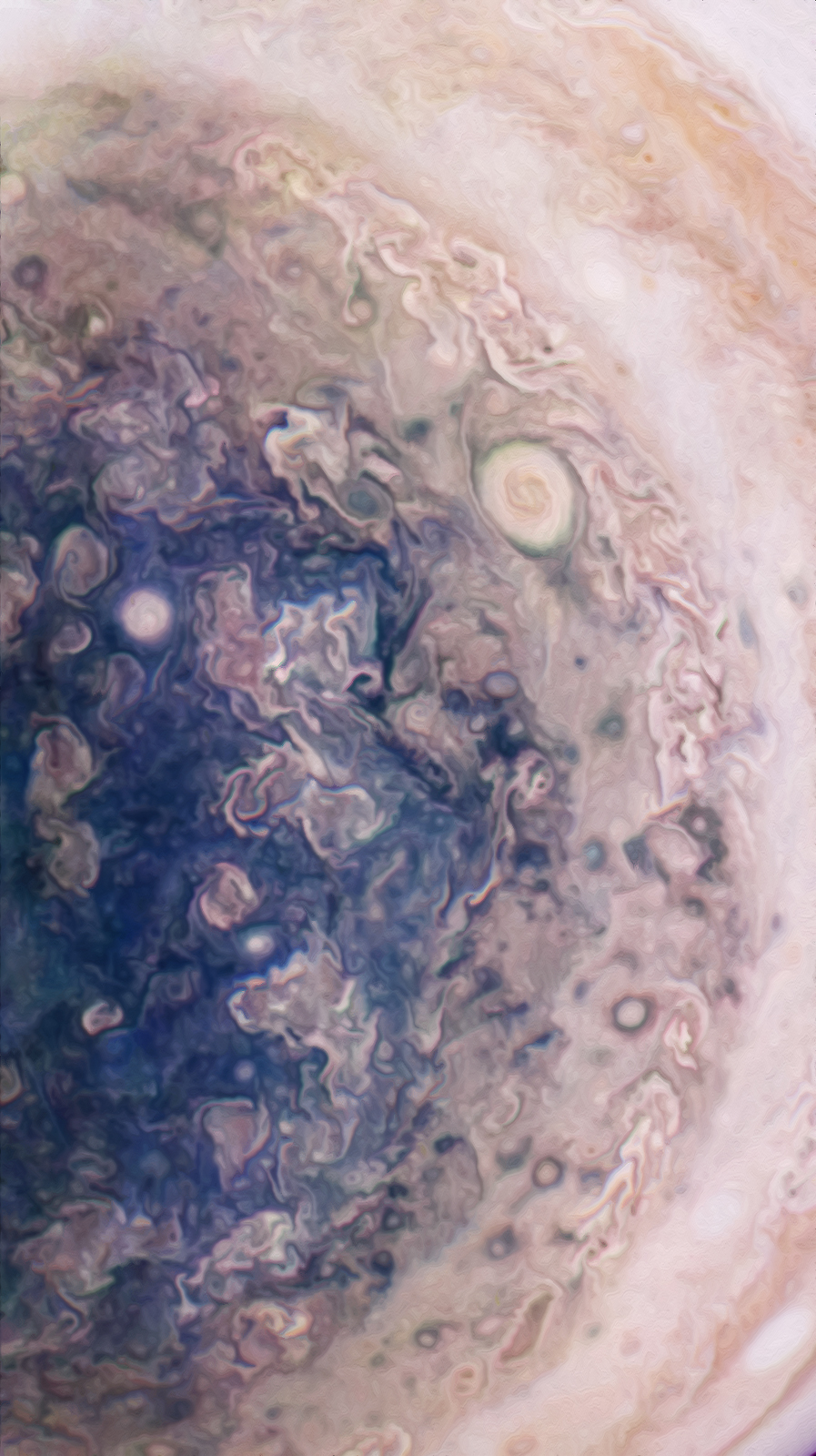Images of Jupiter from Juno are truly a gift to mankind. To see the complexity of the atmosphere in such detail from so far away is truly a feat. I processed this image in Photoshop by first adjusting the RGB color balance and contrast to display the details in all their glory. To resolve the jpg jaggies, I used a noise reduction program.