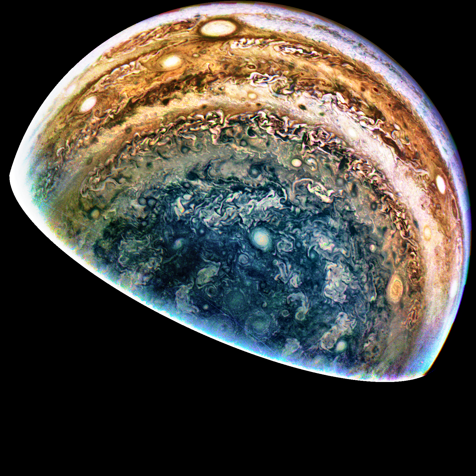 A special note about the Earth Flyby mission phase images: these were acquired in 2013 when Juno flew past Earth. Examples of processed images are shown; most contributions are from amateurs.