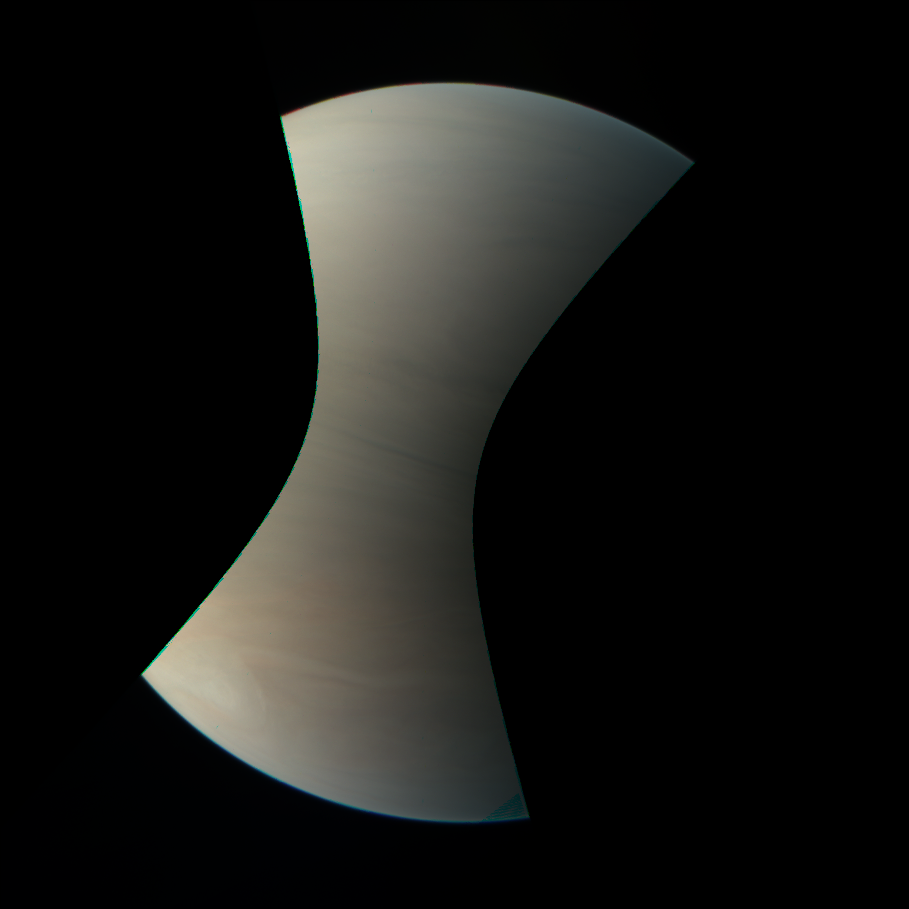 We have a methane filter, included for the polar science investigation, that is almost at the limits of our detector’s wavelength range. To get enough photons for an image we need to use a very long exposure. In some images this results in scattered light in the image. For science purposes we will simply crop out the portions of the image that include this artifact. Work is in progress to determine exactly what conditions cause stray light problems so that this can be minimized for future imaging.