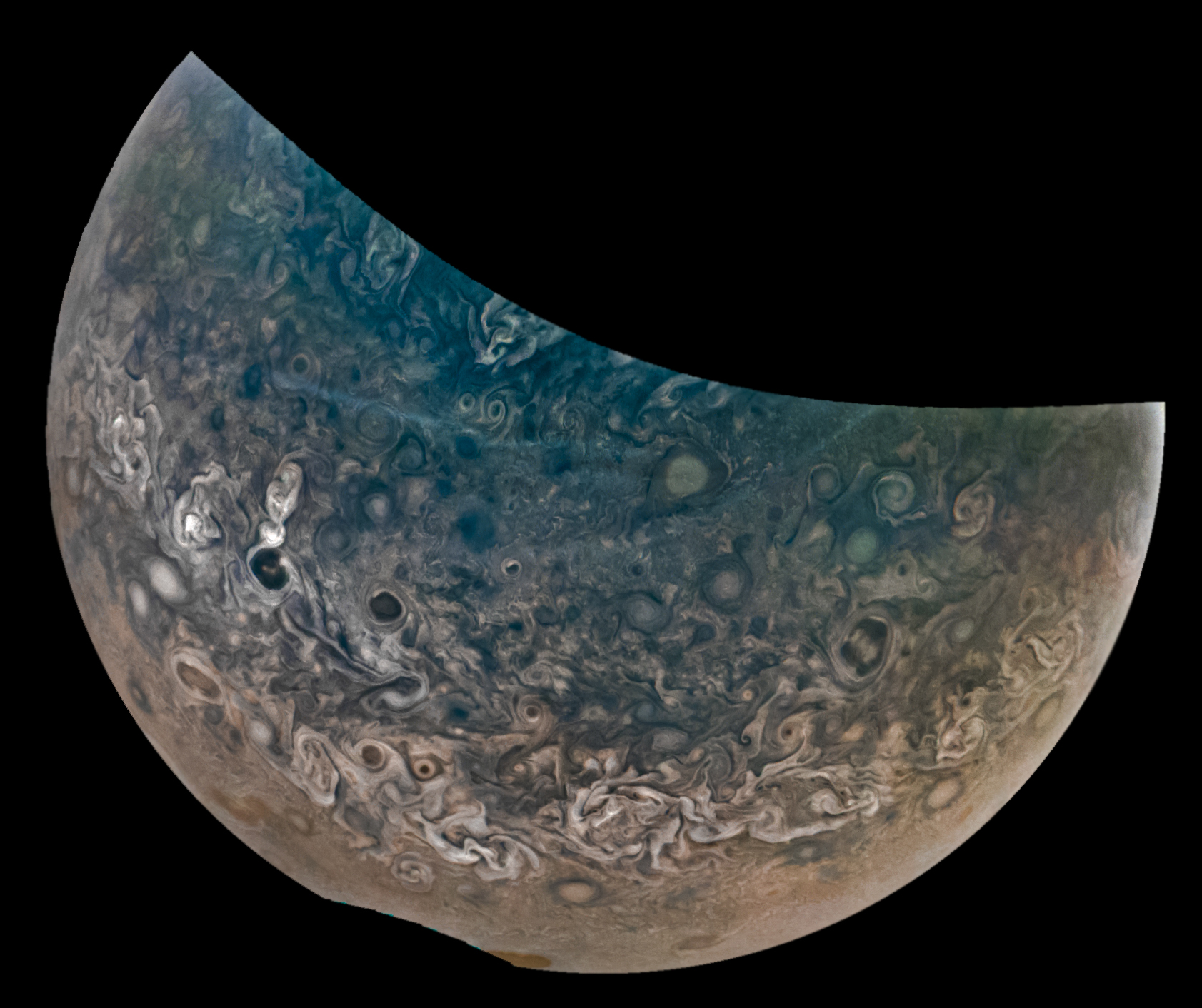 A special note about the Earth Flyby mission phase images: these were acquired in 2013 when Juno flew past Earth. Examples of processed images are shown; most contributions are from amateurs.