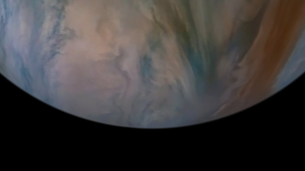 Processed using the JunoCam imager's PJ25 North Equatorial Belt South raw images and data from NASA's Juno spacecraft flyby on February 17, 2020. Enhanced to highlight features, clouds, colours, and the beauty of Jupiter. Artist's impression - not representative of true colour.