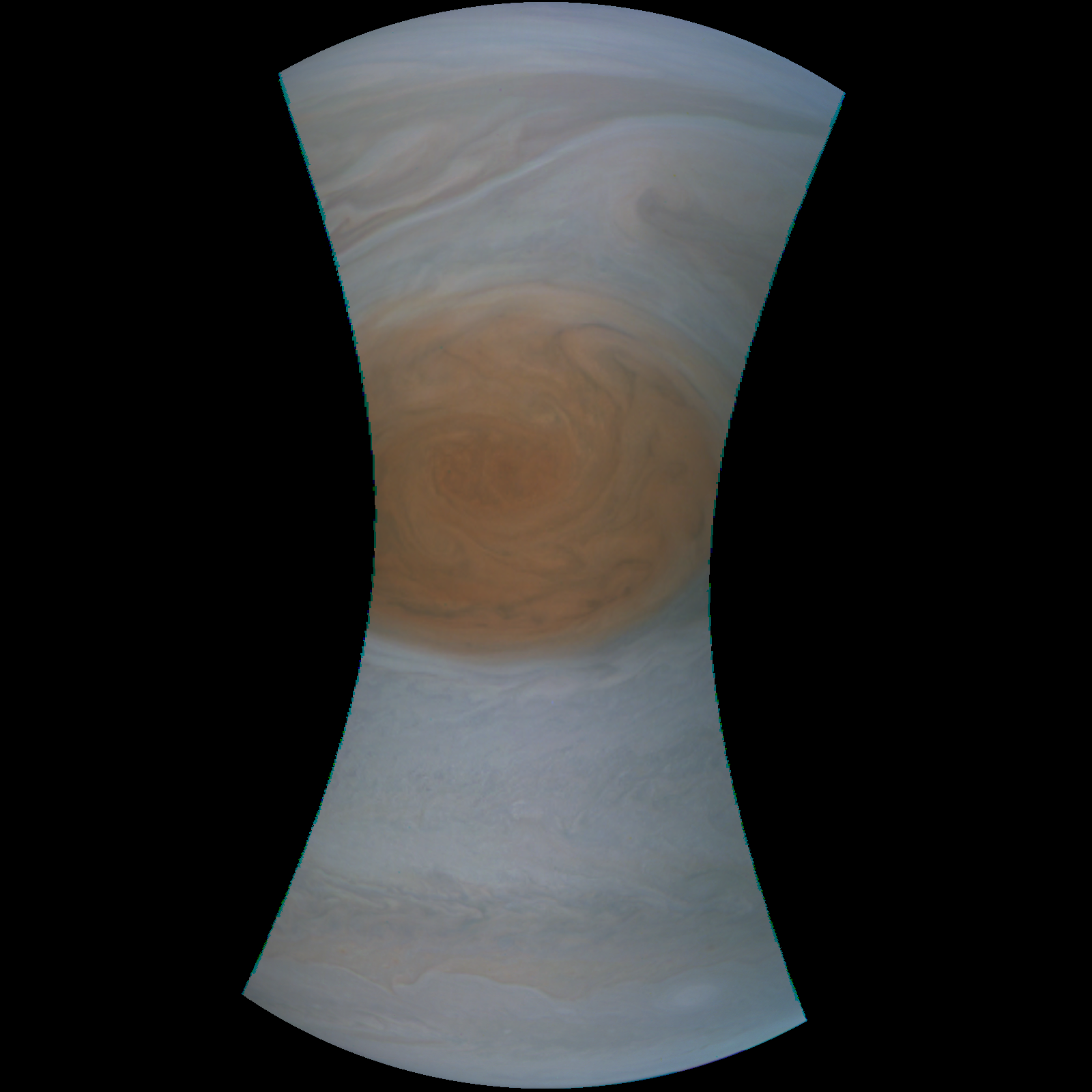 Junocam pixels are 12 bits deep from the camera but are converted to 8 bits inside the instrument using a lossless "companding" table, a process similar to gamma correction, to reduce their size. All Junocam products on the missionjuno website are in this 8-bit form as received on Earth. Scientific users interested in radiometric analysis should use the "RDR" data products archived with the Planetary Data System, which have been converted back to a linear 12-bit scale.