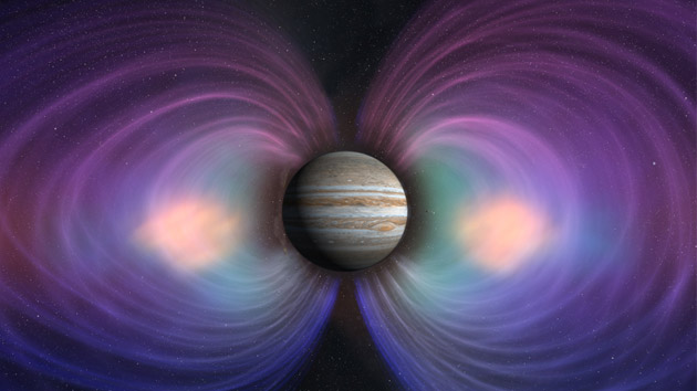 Jupiter’s magnetic field exerts its influence over a vast bubble of charged particles called the magnetosphere.