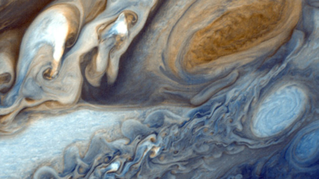 The planets are the leftovers from the star-forming process, and Jupiter accounts for the bulk of that material - more than twice that of all the other planets combined. Its atmosphere - predominantly hydrogen and helium - is similar to the composition of the sun and other stars as well as the clouds of gas and dust in our galaxy.